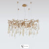 Бронзовая структура расширяется в спутанные ветви, которые ведут к парящим стеклянным частям, что придает воздушный оттенок наряду с нежным и элегантным внешним видом, концепции, видимой в мельчайших деталях стеклянных капель.