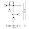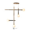 Люстра из латуни и выдувного стекла. Каркас из латунной трубки с двухцветной отделкой и массивными скульптурными латунными браслетами. Сферические рассеиватели из выдувного стекла с сатиновой опаловой отделкой. Металлические детали доступны в выборе металлической отделки. Источник света 4 лампы G9 40W — 6W LED каждая. Вес 10 кг.