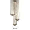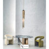 Подвесной светильник Lapis состоит из трех металлических цилиндров, с которых свисают конические художественные стеклянные элементы. Цилиндры структуры имеют разную высоту и отделаны матовой бронзой. Художественные стеклянные элементы выдуваются вручную мастерами-стеклодувами Венецианской области, и их поверхность, когда стекло еще жидкое, покрывается стеклянным порошком. При прохождении света через стекло оно рассеивает отражения, создавая эксклюзивную атмосферу.