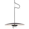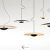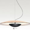 Две пластины – из прессованного дерева и металла – формируют плоский, как тарелка, плафон. Подвесная система состоит из регулируемого троса и стального крепежа. Дополнительный элемент позволяет оригинально изогнуть шнур и добавить композиции индивидуальность. Стильный подвесной светильник подойдет для просторной гостиной, кухни, офиса или уютного бара.
