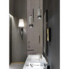 Подвесная лампа, изготовленная из цельного мрамора с ручной полировкой; оснащена ребристым латунным кольцом и встроенным в кабель питания несущим тросом из стали. Светильники GU10 макс. 40 Вт — 6 Вт LED каждый. Вес 10 кг.