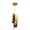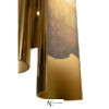 Подвесной светильник, состоящий из 3 фигурных алюминиевых элементов; снаружи в полированной отделке, изнутри – в матовой; мраморный рассеиватель с подсветкой и необработанным краем, вырезанным по линии прожилок. Источником света является светодиод COB. Рассеиватели крепятся к центральному стержню, поддерживаемому регулируемыми по высоте стальными тросами. Металлические детали предлагаются в различных вариантах металлической отделки. Вес 10 кг, общая мощность 9 Вт (3 Вт каждый элемент).