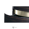 Fendi Asja — тумба прикроватная с овальным корпусом на низком подиуме, детали из массива дерева темного оттенка, элементы с золотистой окантовкой, крышка ровная, фасад из выдвижных ящиков или с распашной дверкой.
