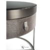 Стильная прикроватная тумбочка с выдвижным ящиком, произведенная из отшлифованной стали лазерным методом. Отделка столешницы возможна в нескольких вариантах: керамика, глянцевое эбеновое дерево, глянцевый орех Canaletto, матовое эбеновое дерево, матовый орех Canaletto, стекло 8 мм, окрашенное в черный цвет, со скосом или же бронзовое/дымчатое зеркало 6 мм, со скосом.
