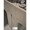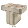 Longhi Do — прикроватная тумбочка с 1 ящиком с основанием из стеклопластика ручной штамповки. Цоколь с краем из шлифованного металла с отделкой. Каркас (из МДФ толщиной 40 мм) определенного профиля с обивкой из кожи по каталогу. Механизм push-pull и лакированные внутренние поверхности цвета матовой бронзы.