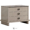 Тумбочка Malerba My Story привлекает внимание круглыми металлическими ручками фигурной формы. Они украшают фасад трех выдвижных ящиков и, по сути, являются единственной декоративной составляющей тумбочки. В основании тумбы — платформа с ножками-панелями.
