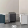 Прикроватная тумбочка с двумя сглаженными углами Dimitri от Meridiani изготовлена в современном стиле. Каркас из дерева может быть выполнена в нескольких вариантах отделки — матовом или глянцевом цветном лаке, а также их комбинации. Присутствуют латунные вставки, окрашенные под бронзу. Модель представлена в двух вариациях — куб и объемный прямоугольник. Первый вариант имеет смягченные противоположные углы, диагональную вставку и две полки, спрятанные за распашными дверцами. Прямоугольная модификация оснащена двумя выдвижными ящиками.