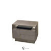 Тумбочка с мягкой обивкой и геометрическим узором. Структура из многослойной фанеры; ящик с наполнением из полиуретана в обивке из индивидуально обтянутых кожей или тканью панелей с легким наполнением. Матовая вставка из нержавеющей стали с выгравированным логотипом. Открытая полка со встроенной светодиодной подсветкой. Край отсека обрамлен рамкой из нержавеющей стали. Цоколь из матовой нержавеющей стали. Металлические детали доступны в различных видах отделки.