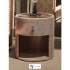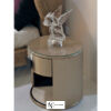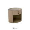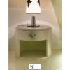 Прикроватная тумбочка с выдвижным ящиком и открытой полкой; каркас из изогнутой фанеры. Внешняя обивка из ткани или кожи. К ящикам предлагаются ручки на выбор: -G (французская лилия) из литой латуни с отделкой состаренной бронзой или полуглянцевым серебром; -V из массива дерева с геральдическим узором Visionnaire, нанесенным с помощью пантографа; -Ручка-щит: металлическая основа с нанесенной на кожаный щит геральдической символикой Visionnaire из нержавеющей стали; покрытие патинированным воском или полуглянцевым серебром. Поставляется со стеклянной или мраморной столешницей.