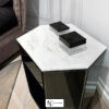 Дизайнер: Samuele Mazza. Тумба прикроватная в виде многогранника, с одним ящиком и полкой. Изготовлена из древесины с зеркальным покрытием. Столешница из мрамора, декоративные детали из полированной стали цвета хрома, золота, бронзы или никеля.