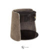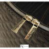 Полукруглое, полое внутри, основание на металлическом каркасе, обитое фактурной кожей/тканью. Периметр выделен металлической молнией с бегунком. Оснащен одним выдвижным ящичком и вместительной полкой. Столешница и база – из ценных пород дерева.