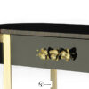 В винтажной выразительности этой элегантной консоли воплощена вся сущность высокого стиля. Нельзя устоять перед чувственными изгибами и лёгкой позолотой консоли Orchidea. Верхняя часть овальной формы с двумя ящиками, обитыми изнутри чёрным бархатом и украшенными литыми бронзовыми ручками в виде орхидей, лежит на металлической основе. Консоль выполнена из шпона, покрытого черным глянцевым лаком. По желанию клиента цвет отделки можно изменить.