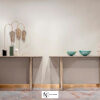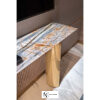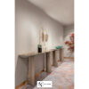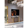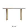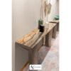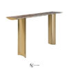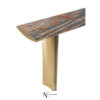 Консоль из мрамора; столешница из мрамора; корпус столешницы из лакированного дерева в матовой отделке с профилем из нержавеющей стали. Ножки из стального короба с выпукло-вогнутыми поверхностями. Металлические детали доступны в ассортименте металлической отделки. В комплект входит настенное крепление.