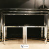 Монолитный каркас из полированной нержавеющей стали с матовой столешницей. Основание из листового металла толщиной 2 мм, ножки из стального профиля круглого сечения. Металлические детали доступны в различных вариантах отделки металла.
