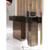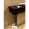 Visionnaire Marty — стеклянный консольный столик, с двойным основанием в зеркальной обшивке рельефной фактуры. Столешница из дымчатого стекла толщиной 8 мм обработана лазерной УФ-сваркой. Дополнительные столешницы на уровне основания из матовой нержавеющей стали. Металлические детали доступны в различных вариантах матовой отделки.