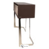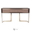 Консоль с двумя выдвижными ящиками из глянцевого лакированного дерева в цветах RAL/NCS. Шкаф оснащен матовым желобком из нержавеющей стали. Ящики обиты кожей; внутренняя часть покрыта черным матовым лаком. Матовые металлические ножки могут быть в различных вариантах отделки.