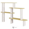 Многоярусный стеллаж Azzal выполнен по эскизам дизайнера Studio Pepe. Идея заключалась в ассиметричном расположении полок из МДФ относительно друг друга. Опоры, на которых лежат полки, визуально имитируют бетонные блоки, скрепленные между собой. На самом деле они обшиты текстурной белой кожей. Такая дизайнерская находка найдет применение в современном интерьере гостиной, прихожей, рабочем кабинете, выставочном зале.