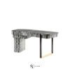 Уникальный и изысканный дизайн с широкими и округлыми формами характеризует письменный стол Enigma. Объемы, наложенные друг на друга нетрадиционным образом, вдохновлены «деконструктивистской архитектурой» конца 80-х годов прошлого века. Это изделие обладает своеобразной, но в то же время функциональной эстетикой благодаря кожаной столешнице, повторяющей формы основания, и наличию двух «скрытых ящиков», невидимых снаружи. Белый и черный шпон дерева чередуются неравномерно. Отделка Matrix письменного стола Enigma предлагается в матовом или блестящем варианте.