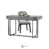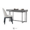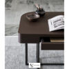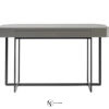 Основание столика выполнено в виде двух металлических рам, пересекающихся друг с другом. Но особое внимание привлекает прямоугольная столешница, поверхность которой обтянута плотной кожей. Также предлагается не менее привлекательный вариант из массива дерева в глянцевой отделке. Для большего удобства модель дополнена двумя компактными выдвижными ящиками.