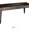 Письменный стол с металлическим основанием, деревянной столешницей с кожаной вставкой, тумбой с тремя выдвижными ящиками в кожаной обивке и маленькой настольной тумбой с ящиками. Ручки выполнены из мрамора.