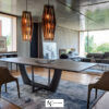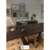 Обеденный стол со скульптурными формами, обогащенный уникальными деталями, которые будут эффектны в любом интерьере. Массивная структура и утонченная ручная обработка подчеркивают необычное соединение асимметричного металлического кольца, которое может быть в отделке латунь, титан или коричневый лак.