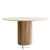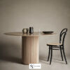 Стол состоит из тонкой столешницы из дубового шпона, которая находится наверху и контрастирует с ребристым основанием колонны из массива дуба. Столы могут быть окрашены в натуральный, белый, каштановый, тиковый или темно-серый цвет.