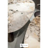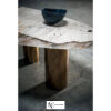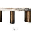 Цилиндрические ножки разных размеров из окрашенного в черный цвет МДФ, покрытого старинной латунью или железом под старину. Столешница из камня с водоотталкивающим защитным маслом с опорой из окрашенного листового металла.
