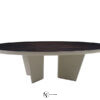 Bentley Madeley — трапециевидный структурированный стол из изогнутых деревянных панелей с краями, украшенными кожаным покрытием ручной работы. Ножки изготовлены из стали с металлическим покрытием.
