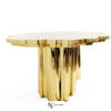 Обеденный стол Fortuna — это сверкающий предмет, сочетающий в себе неповторимую эстетику дизайна Boca do Lobo и страсть к золоту. Стол Fortuna воплощает в себе сущность силы, изысканности, мистики и соблазна. Уникальная текстура поверхности стола и невероятная отделка. Материалы и отделки: дерево и полированная латунь.