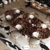 Эксклюзивный стол Patch от Boca do Lobo имеет сложную столешницу из шпона дерева и скульптурное основание, придающее изысканность любой домашней обстановке. Стол Patch подойдет как для современной гостиной, так и для изысканной кухни. Столешница этого обеденного стола покрыта интригующей геометрической мозаикой из шпона дерева, а основание выполнено из дуба. Этот круглый центральный стол покрыт глянцевым лаком. Высота стола 76 см, длина 160 см. Благодаря уникальной ножке снизу он прекрасно сочетается с эстетикой любого дома или напольного покрытия.