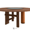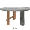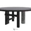 Каркас восхищает контрастностью и сочетанием материалов, несовместимых на первый взгляд. Овальную или круглую мраморную столешницу с одной стороны поддерживает широкая цилиндрическая опора из мрамора. С другой – конструкция из деревянных столбиков, соединенных перегородками. Стол от Cassina изготавливается в различных размерах, с разным количеством ножек, в вариантах цветового оформления.