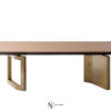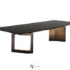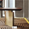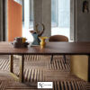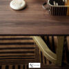 Fendi Ford — стол обеденный из массива дерева на двух ножках, столешница ровная прямоугольной формы, удерживается на плоских слегка выгнутой формы ножках, одна в виде рамы, другая планки, установлены по диагонали.