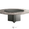 Стол с деревянной или мраморной столешницей, разделенный на четыре секции, и полуутопленная вращающаяся пластина из закаленного стекла толщиной 10 мм со скосом 35 мм. Деревянное основание покрыто закаленным стеклом толщиной 6 мм.