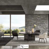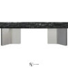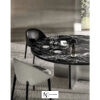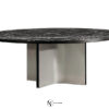 Благодаря своему смелому основанию скульптурной формы, на котором изображена серия четвертей круга, освещенных отблесками металла и перемежающихся черной вставкой, стол Marvin производит впечатляющее впечатление и отличается большой универсальностью. Он является частью широкого спектра обеденных столов с явным архитектурным вдохновением, с основаниями из сатинированной нержавеющей стали или из лакированного металла цвета олова. Дизайн дополняется драгоценными материалами, выбранными для столешницы: мрамор Bianconero с переплетением оттенков, создающим сильное ультрасовременное ощущение, и мрамор Marron Damasco. В качестве альтернативы предлагается столешница из матового массива ясеня с лакированным покрытием Black open-pore.