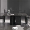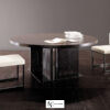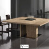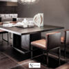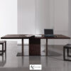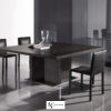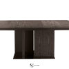 Стол внушительных размеров и с присущим ему изысканным дизайном, достигнутым благодаря умелому сочетанию сложных материалов. Основание состоит из металлической пластины с отделкой «бронза» или «черный никель», а структура и столешница — из натурального брашированного дуба, дуба с открытыми порами, окрашенного в серый цвет, дуба с открытыми порами, покрытого лаком «мока» или «черный», и дуба с пескоструйной обработкой с открытыми порами в полуглянцевом черном или темно-коричневом цвете.