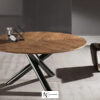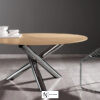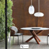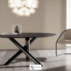 Поразительное основание изготовлено из сварной металлической трубы диаметром 10 см и поставляется в черно-никелевой или глянцевой окраске Butter, Black и Pewter. Столешница доступна в круглом, квадратном и прямоугольном исполнении в нескольких размерах. Существует множество вариантов отделки столешницы, от закаленного стекла Smoked Grey до мрамора Calacatta, а также сложные варианты из дерева, такие как орех Canaletto Walnut и дуб, предлагаемые в натуральной матовой отделке с открытыми порами, окрашенной в серый цвет, лакированной с открытыми порами в цвет Moka или черный.