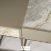 Туалетный стол из коллекции Lineup — это сочетание мрамора в дверце, ящиках и столешнице, в сочетании с матовым лаком в пастельных тонах. Каркас изготовлен из металла с гравировкой. Этот стол доступен в двух версиях: левой и правой.
