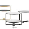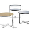 Многоцелевые столы с одной или двумя столешницами разной высоты и утонченным игривым духом в зависимости от отделки. Существует множество графически мощных комбинаций поверхностей и рам: мрамор, дерево, стекло и лак для первых, хром и лак, даже цветной, для вторых. Различные интерпретации делают их идеальным выбором для нескольких настроек, которые могут быть как строгими, так и динамическими.