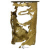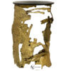 Столик выполнен из латуни с топом из стекла. Природа в его незавершенной форме протекает через эту харизматическую часть мебели, как потоки лавы во время извержения вулкана. Каркас от литой латуни и бронзового стекла воплощает конечный крик природы. Позвольте себе услышать окончательный вызов, чувствуя свою силу и отражение в городской жизни.