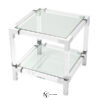 Каркас столика, дополненный двумя столешницами из прочного прозрачного стекла Clear Glass, выполнен из прозрачного акрила Clear Acrylic и доступен в двух модификациях. Углы и ножки из полированной нержавеющей стали дополняют современную эстетику предмета.