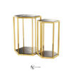 Роскошный комплект из двух шестигранных столиков Taro, спроектированных в стиле ар-деко дизайнерами голландского бренда Eichholtz, добавит стильный акцент в интерьер гостиной. Благодаря шестиугольным полированным каркасам, они идеально сочетаются с гламурными интерьерами. Каркас столика, дополненный мраморной столешницей и основанием, выполнен из полированной нержавеющей стали и доступен в двух модификациях.