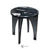 Столик имеет глянцевую отделку столешницы: мрамор толщиной 20 мм или темное дымчатое стекло толщиной 10 мм. Ножки стола могут иметь вставки из темного дымчатого или бронзового стекла.