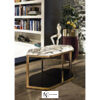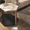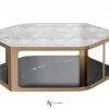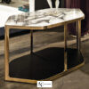 Столешницы выполняются из мрамора или закаленного дымчатого зеркала. Поверхность в основании оформляется обивкой из кожи. Каркас модели изготовлен из металла с различными декоративными покрытиями.