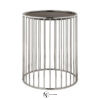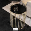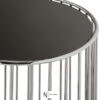 Основание столика Caulfield изготавливается из металлических прутьев. Круглая столешница выполняется из дерева или стекла и покрывается лаком. Основание может быть выполнено в цвете хром или окрашиваться в золотой.