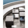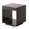 Металлическая рама доступна в разных отделках, а верхняя часть установлена в раме, как драгоценный камень в ювелирном изделии, и доступна из мрамора редких цветовых комбинаций или из дерева, покрытого лаком. В столиках есть внутренний отсек для хранения журналов или других предметов.