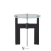 Основание столика Ellis изготавливается из прочного металла и покрывается лаком темного цвета. Круглая столешница выполняется из прозрачного закаленного стекла.