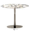 Jigger — это элегантный столик на тонкой металлической подставке с культовой ножкой в стиле 1960-х годов в центре. С основанием из полированного алюминия, покрытого бронзовым лаком, он поставляется в трех вариантах высоты и предлагает четыре диаметра столешницы, выполненной из изысканных материалов, придающих особую привлекательность. Это столешница из мрамора Calacatta с нежным серым оттенком, столешница из матового мрамора Dedalus с темными прожилками, рисующими абстрактные и динамичные пейзажи на сером и кремово-белом фоне, столешница из Black pâte de verre с соединением из черного анодированного алюминия и, наконец, столешница из ясеня цвета Moka с открытой порой, покрытого лаком, или из эвкалипта с матовым лаком.