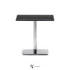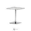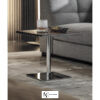 Столик Kyle с минимальным модернистским дизайном и использованием материалов имеет металлический каркас с хромированной отделкой, на котором размещается квадратная столешница из мрамора или дерева с закругленными углами и гладкими краями.