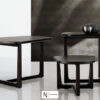 Основание конструкции и рама, обрамляющая контур столешницы, выполняются из натуральной древесины: дуба Spessart или черного вяза. Отделка столешницы – из мрамора, дерева или стекла.