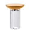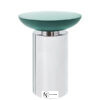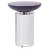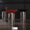 Столешница из полированной и протравленной смолы на цилиндрическом металлическом основании. Верх из смолы доступен в девяти цветах: янтарь, аметист, пепел, аквамарин, гагат, розовый кварц, рубин, сапфир, топаз. Металлические отделки доступны в покрытой сталью или с порошковым покрытием.